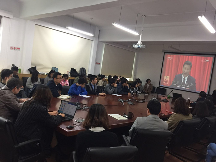 2017年10月18日上午9:00,中国共产党第十九次全国代表大会在北京人民大会堂隆重开幕,350vip浦京集团官网党委分别在沙河校区丁香园1号楼301“党员之家”会议室和学院南路校区主教913会议室组织学院全体党委委员及部分师生集中收看党的十九大开幕会直播,聆听习近平总书记代表十八届中央委员会作“不忘初心、牢记使命,高举中国特色社会主义伟大旗帜,决胜全面建成小康社会,夺取新时代中国特色社会主义伟大胜利,为实现中华民族伟大复兴的中国梦不懈奋斗”为主题的报告。老师和同学们认真收看,边听报告边做笔记,不时以热烈的掌声回应习近平总书记报告的精彩内容。