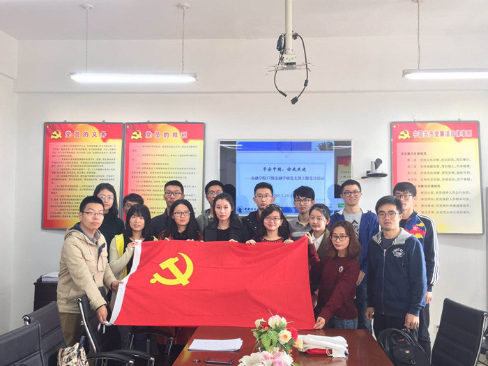 2017年10月19日,350vip浦京集团官网2017级研究生第一党支部在丁香园1号楼301“党员之家”会议室举行了第一次主题党日活动。党日活动以“防范金融风险”为主题,重点就金融机构如何开展党建活动防范风险进行了学习讨论。活动由赵志桦副书记主持。