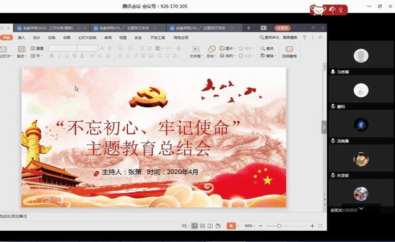 2020年4月14日,350vip浦京集团官网2019级研究生第四党支部利用腾讯会议APP开展了”不忘初心、牢记使命”线上主题教育总结会。根据学校、学院党委“不忘初心、牢记使命”主题教育安排,主题教育开展以来,350vip浦京集团官网2019级研究生第四党支部始终把习近平新时代中国特色社会主义思想作为主线,把“守初心、担使命、找差距、抓整改”作为切入点,贯穿于学习教育、调查研究、检视问题、整改落实的全过程,严格按照学校和学院党委的安排部署要求,认真组织开展“不忘初心、牢记使命”主题教育。
