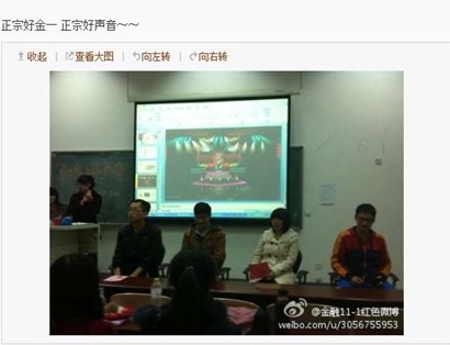 通过这一环节的热身准备,活动进入到了最激动人心的时刻“献礼十八大之巅峰对决”,两队从5首歌曲中选择1首,分别演唱,由现场观众进行投票,选出“金一好声音”和“金一好团队”。最终杨明鑫凭借着精彩的演唱获得了“金一好声音”的称号,徐耀代表的“镰刀”队获得“金一好团队”的称号,并由团支书陈华璐和班长张予初为他们颁奖和赠送奖品。至此“红色好声音——金一专场”团日活动圆满结束,赢得了全班同学的一致好评。