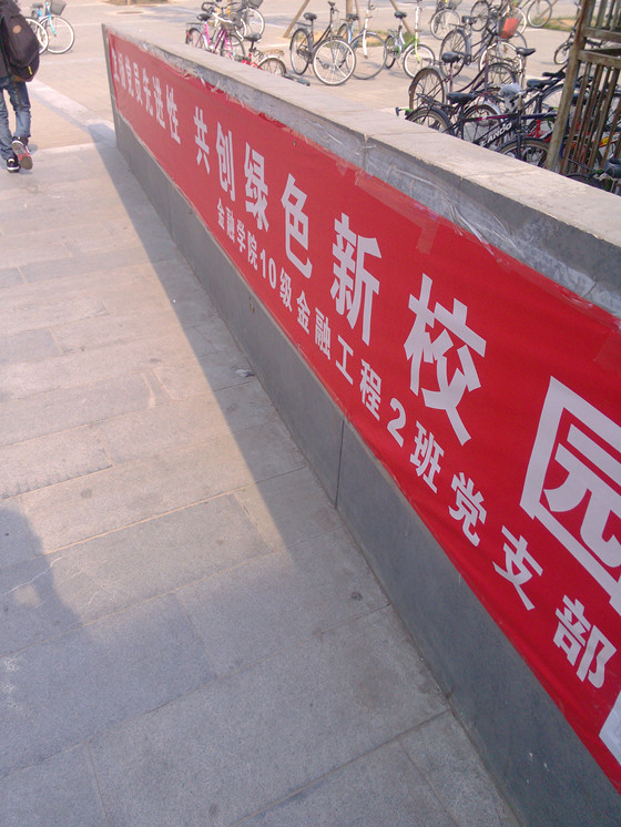 作为党支部党建基金活动的一部分,这次活动的目的在于以手机报的形式向大家宣传环保知识,提高保护环境、绿色发展在校园中的认知度。活动主要包括张贴横幅、发放卡贴与宣传单、收集同学手机报申请以及发放手机报四个环节。中午11点刚过,班中7位参与活动的同学就来到食堂门口张贴横幅,细雨朦胧中“发展党员先进性,共创绿色新校”的标语格外引人注目。随着人流逐渐密集,各位同学在食堂两侧准备好卡贴与宣传单分送给前来就餐的师生,在卡贴的发放过程中不断有感兴趣的同学前来询问,对活动流程以及手机报内容表现出了很大的兴趣。时间一晃而过,一个小时后大家手中的宣传单已经所剩无几,拍照合影后活动的前两个环节顺利结束。