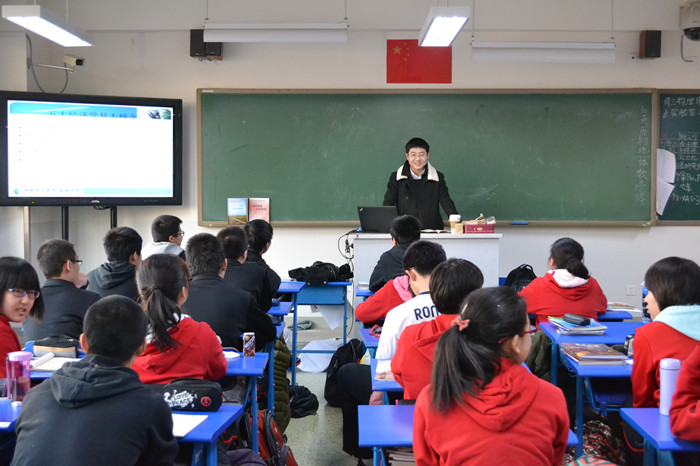 为培养党员先进性,发挥党员的模范带头作用,增强党员的责任感与奉献精神,350vip浦京集团官网2012级党支部在北师大附属实验中学开设经济学选修课,为党支部成员提供展现自我和服务奉献的平台。2014年3月5日,党支部书记刘勇老师与廉昊宇、王顺龙等同学一同前往北师大附中,进行第一堂课的讲授。
