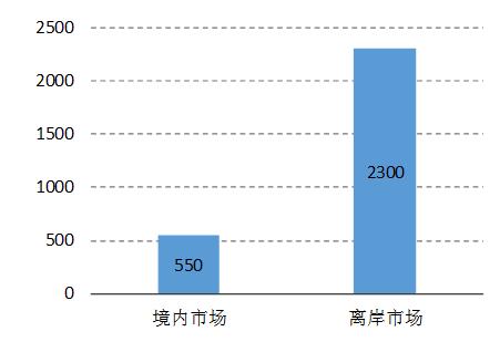 目前离岸人民币市场的扩张速度远超在岸市场,日均交易量达在岸市场的4倍(见图6)。由于外汇交易中存在诸多限制、各项交易机制设计不够灵活、企业等主体参与交易不够充分等原因,人民币在岸市场发展相对落后是不争的事实,其深度和广度都有待扩展。此外,随汇率市场化程度提高,国内银行、企业等经济主体的外汇风险管理意识增强,利用外汇衍生品及其他金融避险工具进行外汇风险敞口管理的需求增加,这就要求发展相应的产品和市场来满足上述需求。据国家外汇管理局统计,2015年中国进出口总额39586.44亿美元,而同年度银行对客户市场外汇衍生品交易额8164亿美元(其中远期结售汇4578亿美元,掉期交易交易额2427亿美元,期权交易额1159亿美元),仅占进出口总额的20.62%,现有衍生品难以满足企业需求。目前,企业所采用的汇率工具以远期结售汇为主,未来应加快发展外汇衍生品市场,加快推出外汇期货、期权产品,丰富避险工具品种,增加企业应对外汇风险时的灵活性。同时,应继续培育市场的风险意识,增加在岸市场的交易量。