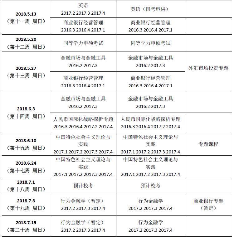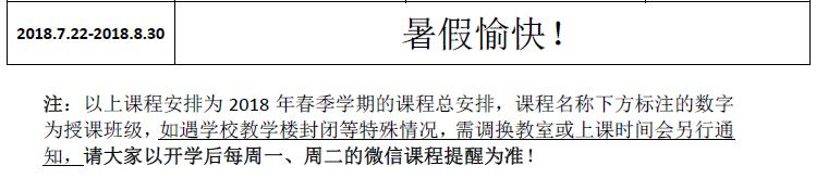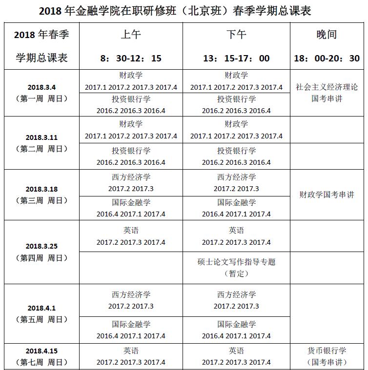 北京班2018学年春季学期总课表
