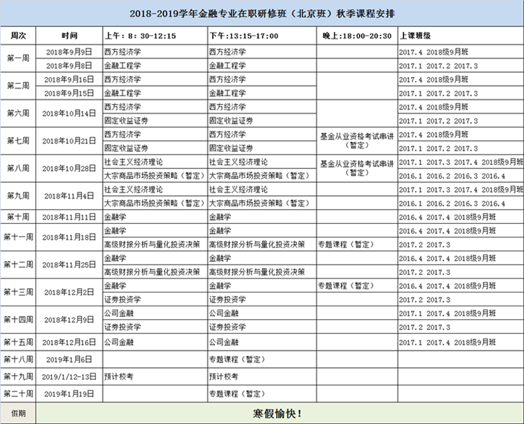 上一条:2019年北京班春季学期总课表 下一条:2018年暑假期间在职研修班办公室值班安排