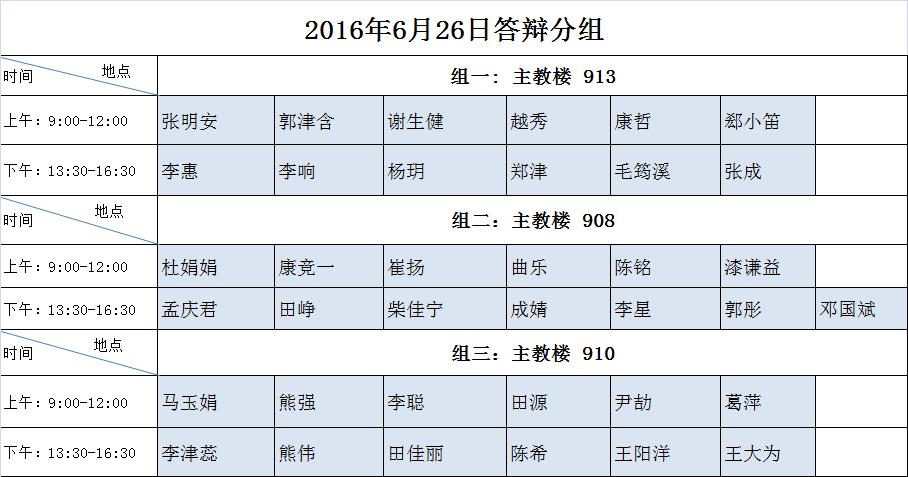 2016年6月26日浦京集团官网在职研论文答辩分组安排