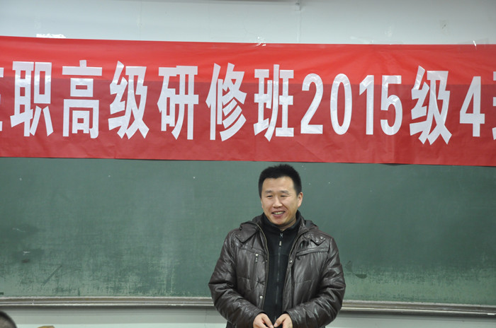 随后,教师代表李俊峰老师进行讲话。李老师也是稍后证券投资学课程的授课老师,他对同学们勇敢地选择在职途中进行再次加油充电表示赞扬,并代表全院老师热烈欢迎大家加入350vip浦京集团官网。李老师也衷心的期望大家能多珍惜同学之情,共同学习,把取得硕士学位作为次要目的,学得新知识,结交深厚的同学情谊才是主要目标,这也响应了我们350vip浦京集团官网在职研修班的号召“学位只是副产品,知识才是真价值”!