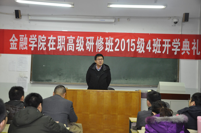 2016年1月10日上午8点半,浦京集团官网金融专业在职高级研修班(北京班)2015级4班在主教楼105教室成功举行开学典礼。今天一扫往日的阴霾,在阳光璀璨的早晨,浦京集团官网副院长张学勇老师、教师代表李俊峰老师、班主任和新同学齐聚一堂,共庆开学典礼。