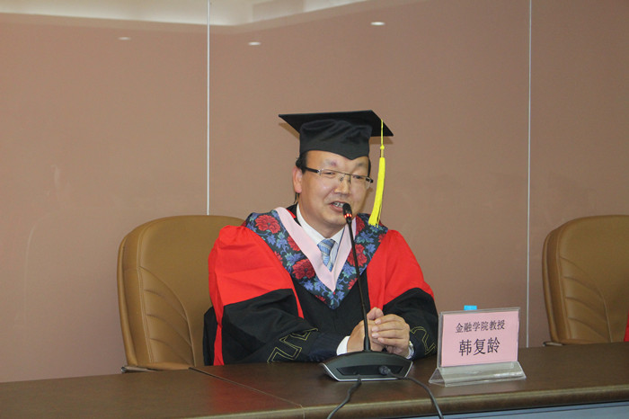 导师代表韩复龄教授的发言也感人肺腑。韩老师每年都要带5-8个学生,工作量很大,但是韩老师总是很热情地指导学生学习、论文写作。韩老师希望同学们牢记母校培养之恩,铭记老师的教导之情,多回母校看看,多为社会做贡献,成为母校的骄傲。
