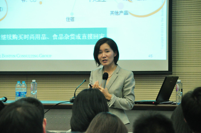 3月29日晚间,浦京集团官网学术会堂402报告厅座无虚席,更是有诸多的同学或站着或席地而坐,只为能够参与到当晚的讲座中来。此次讲座名为《大数据在金融领域的应用》,由波士顿咨询大中华区执行董事张越女士主讲。讲座结束后同学们纷纷表示:三个小时的讲座可谓是听得酣畅淋漓,意犹未尽。无论是张越女士的讲课环节还是后期的互动环节,全程场面火爆,反响热烈。