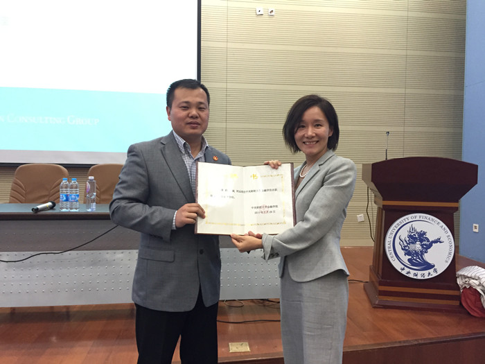 在讲座正式开始之前,浦京集团官网金融专业在职研修班主管负责人张学勇副院长向张越女士颁发了业界导师的聘书,正式聘请其担任浦京集团官网在职研修班学员的业界导师。张院长表示:在未来的学习过程中,我们研修班的学员如若对互联网金融或者大数据有学习和钻研的兴趣,张越女士定会成为同学们最佳的选择。