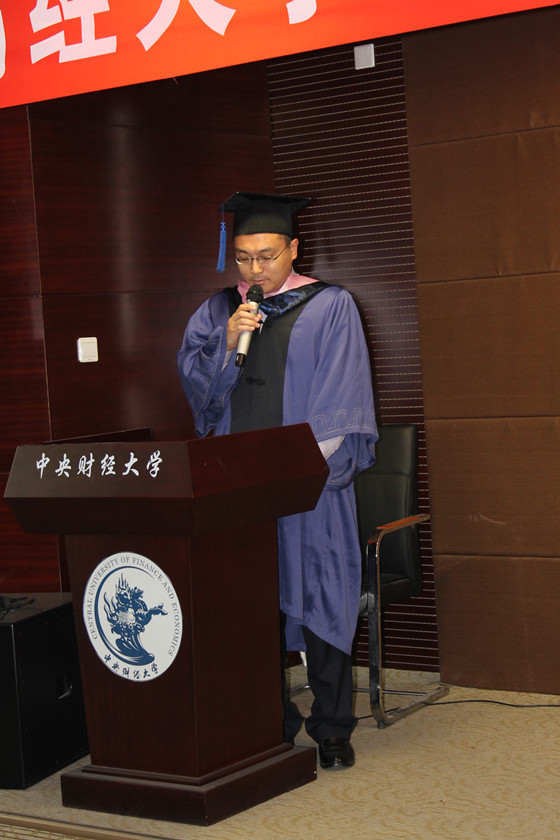 在随后的学生代表发言环节,2014届在职研毕业生代表于雷鸣同学进行了热情洋溢的发言。于同学首先代表全体毕业生对在职研全体教职员的辛勤付出表示了感谢。其次,他分享了在职研学习过程中的所思所感。最后代表全体毕业生表达了自己在今后工作生活中的奋斗决心。