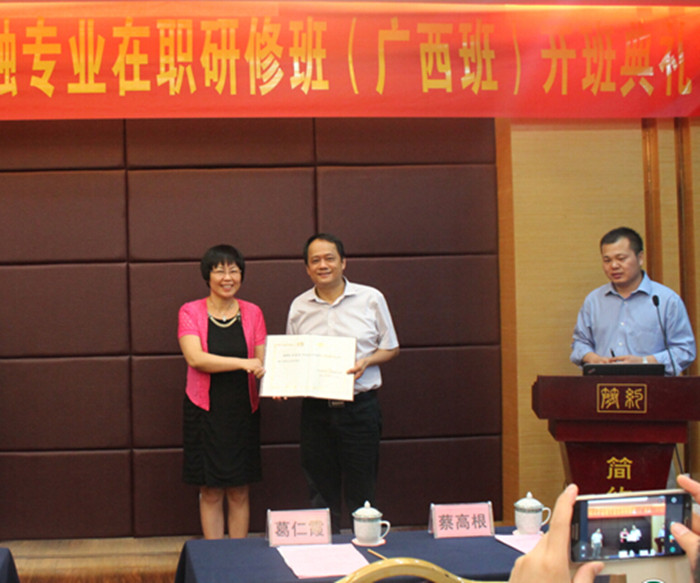 葛仁霞书记分别向蔡高根处长和钱云涛副行长颁发了业界导师的聘书。蔡高根处长回忆了自己的求学经历,并强调350vip浦京集团官网广西班要给大家提供高标准的授课质量和优良的学习环境,作为广西中财校友会的会长他殷切地希望学员们珍惜现在的学习机会,热烈地欢迎各位新学员加入中财这个大家庭。