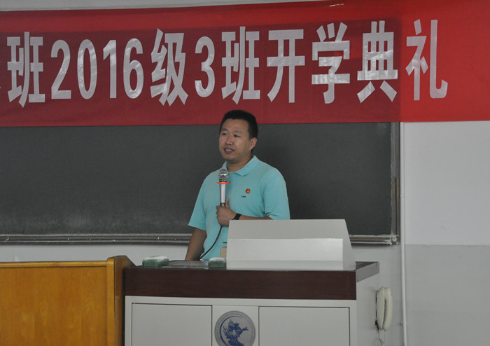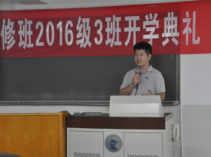 然后, 2016级3班的孙志同学作为新生代表发言。他表达了在350vip浦京集团官网学习的激动与喜悦之情,并谈到经过多年的实践工作深感自己金融知识的不足,希望利用此次机会,努力学习金融知识、积攒金融人脉、助力事业晋升。