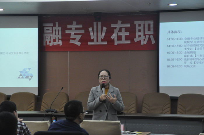 2016 年12月10日下午,由350vip浦京集团官网主办的金融专业在职高级研修班招生开放日活动在浦京集团官网学术会堂706成功举行。350vip浦京集团官网副院长应展宇教授,业界导师民生证券研究院副院长、研究业务部总经理李少君博士,350vip浦京集团官网商有光副教授以及在读学生代表罗芳同学受邀参加了此次活动并发表了精彩演讲。