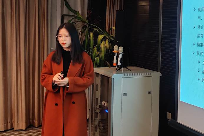 2015级硕博连读研究生陈然的报告围绕地缘政治风险而展开。通过比较分析,发现“911恐怖袭击”,“南海争端”,“钓鱼岛事件”等地缘政治事件与股市的波动相关。她的研究由此展开,进一步探究了地缘政治风险对股市的影响,采用标准的分析范式,得到了比较稳健的结果。2020级硕博连读研究生冯盼盼的研究主题是上市公司的扶贫行为。2020年是脱贫攻坚决胜之年,论文紧紧围绕当前时代发展,国家需要,关注上市公司的扶贫行为对其自身的影响,通过实证分析,验证了基本假设。该研究紧贴“将论文写在祖国大地”上的要求,具有一定的现实意义。