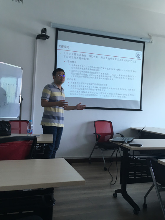 本次研讨会主要探讨上市公司股权再融资时,承销商更换对上市公司市场表现的影响。其中理论部分由350vip浦京集团官网副教授魏旭老师讲述,实证部分由350vip浦京集团官网博士生张秋月讲述。本文的模型假设认为当承销商和发行公司之间存在较为严重的信息不对称(在IPO时),不同资产质量的公司都能获得高声誉承销商承销。但是,当发行公司和承销商对彼此状况了解更为深入(在SEO时),高声誉承销商能识别不同公司的资产质量,并且出于其自身声誉的考虑,不再承销低资产质量的公司,此时低资产质量的公司只能选择低声誉的承销商。实证部分验证了模型的假设,第一质量差的公司更倾向在SEO时更换承销商;第二更换组公司与未更换组公司在IPO时雇佣的承销商声誉没有显著差别,而更换组公司在SEO时雇佣的承销商声誉明显;第三相较于更换了IPO承销商的公司,未更换承销商的公司在SEO时能够获取更低的折扣率和更高的长期股票回报率。