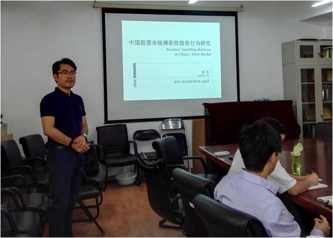 6月1日中午,由中国资产管理研究中心主办的,立足于“以学术服务市场,以市场检验学术”的第二场学术研究讲座在学院南路校区913会议室举行。清华大学经济管理学院金融系博士研究生梁昱应邀作了题为“中国股票市场博彩性投资行为研究”的优秀博士论文分享会。讲座由中国资产管理研究中心主任张学勇教授主持。