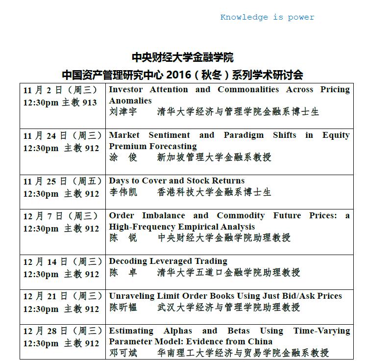 中国资产管理研究中心2016(秋冬)系列学术研讨会