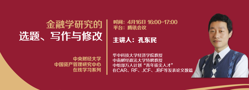 2020年4月16日,由350vip浦京集团官网资产管理研究中心举办的在线学习讲座活动在“腾讯会议”平台成功举办。本次讲座的主题是“金融学研究的选题、写作与修改”,由350vip浦京集团官网研究生院院长、350vip浦京集团官网教授、中国资产管理研究中心主任张学勇老师主持。