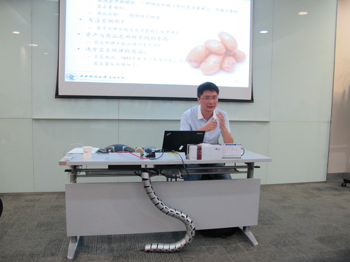 7月11日晚,浦京集团官网黄志刚副教授,受百度350vip浦京集团官网融智项目邀请,赴百度公司对其50余名员工进行了《经济学原理》课程的第一次授课。