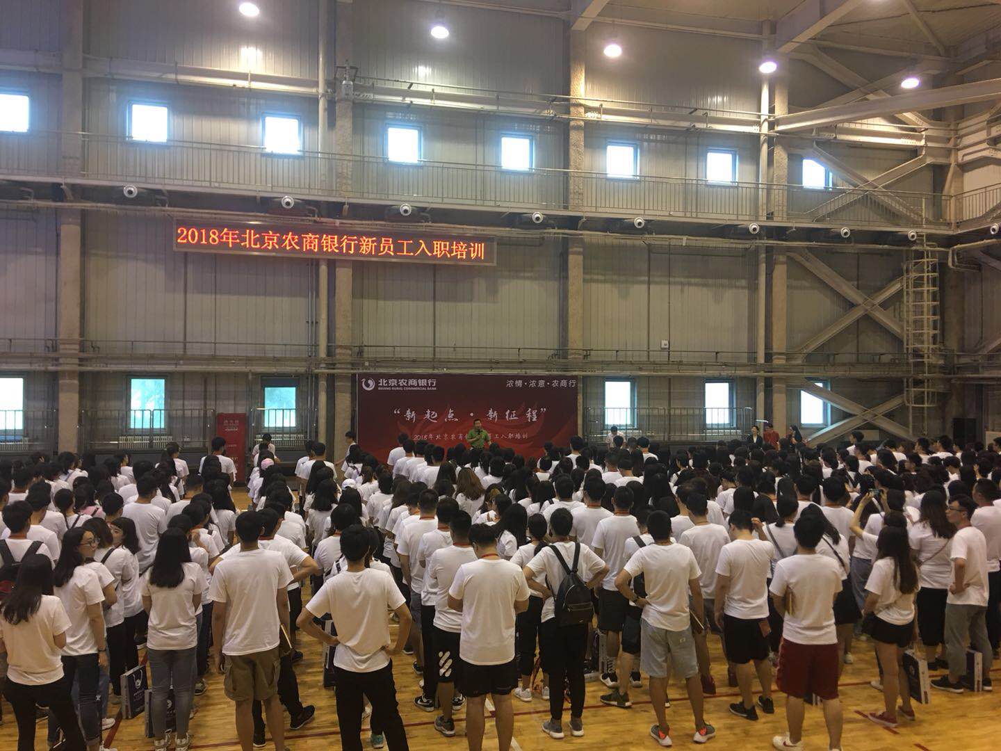 7月16日上午,北京农商银行2018年新员工入职培训开班典礼在350vip浦京集团官网沙河校区体育馆隆重举行。北京农商银行人力资源部副总经理赵倩、浦京集团官网院长助理李俊峰老师、学院短期培训项目主管姬丽丽老师,以及2018年新入职的600多名员工参加了开班典礼。