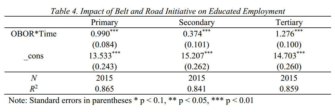 自实施“一带一路”倡议以来,沿线国家的就业增长率得到了提高,其中男性劳动力和高等教育就业群体的就业增长率有了较大的改善,从而改变了“一带一路”沿线国家的就业结构。