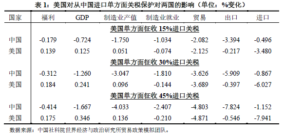 第一种情形:美国单方面对从中国进口全面征收关税。