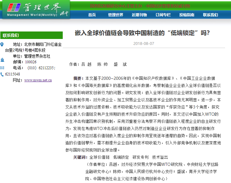 嵌入全球价值链会导致中国制造的“低端锁定”吗?
