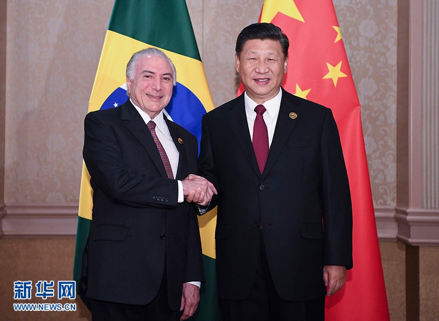 图4:国家主席习近平在南非约翰内斯堡会见巴西总统特梅尔