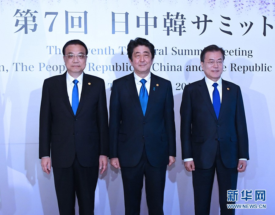 1. 2018年5月9日,国务院总理李克强在东京迎宾馆同日本首相安倍晋三、韩国总统文在寅共同出席第七次中日韩领导人会议,就中日韩合作以及地区和国际问题交换看法。