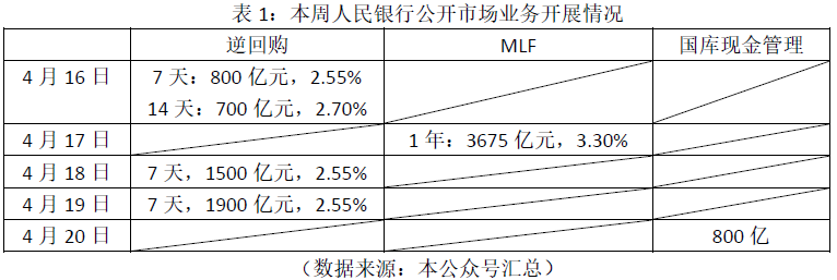 点评:本周人民银行行长易纲在美国华盛顿出席了国际货币基金组织/世界银行春季例会系列会议,与多个国家的央行行长及政府官员就经济形势、金融合作等多个问题交换了意见。