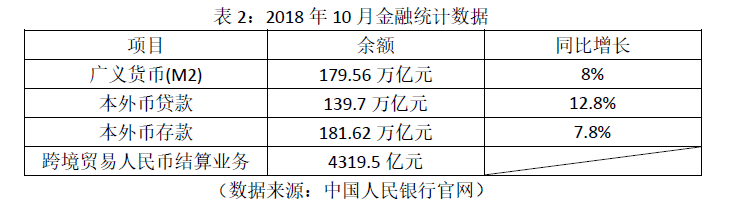 表2:2018年10月金融统计数据