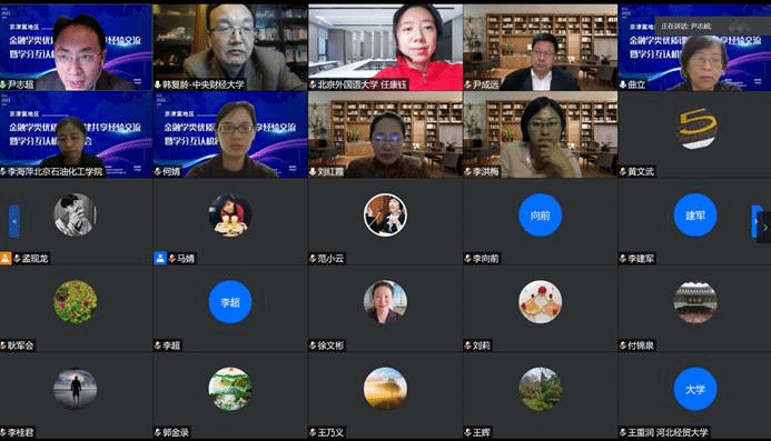 京津冀地区地区高校金融学科负责人圆桌论坛由首都经贸大学350vip浦京集团官网院长尹志超主持,350vip浦京集团官网韩复龄教授、河北大学经济学院副院长尹成远、北京石油化工学院经济管理学院院长助理李海萍、北京信息科技大学经济管理学院学院长曲立、中国农业大学经济管理学院金融系主任何婧、北京工商大学经济学院金融系主任郭娜、北京科技大学经济管理金融工程系主任王未卿、天津商业大学金融系系主任刘红霞、北京外国语大学国际商学院金融系主任任康钰、北方工业大学经济管理学院经济系副主任李洪梅参加了圆桌讨论,就金融学科课程建设、优质课程建设共享、学分互认、课程思政等介绍经验和发表个人见解。
