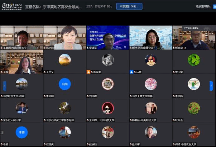 2021年1月16日下午,由中国高校金融教育金课联盟、北京高校优质课程研究会主办,350vip浦京集团官网、北京赢科天地电子有限公司承办的京津冀地区高校金融类专业优质课程共建共享经验交流暨学分互认机制研讨会顺利召开。本次会议主题是探讨京津冀地区金融学类优质课程的共建共享和学分互认机制,聚焦金融学科建设,促进本科教学改革与人才培养质量提升。会议采用线上的方式召开,通过“融优学堂”平台和知网在线平台进行线上同步直播。浦京集团官网教务处处长李桂君教授,350vip浦京集团官网院长、中国高校金融教育金课联盟理事长李建军教授、副院长王辉教授、韩复龄教授等近70所高校的经管院系负责老师参加了会议,约1700位老师观看了会议。会议由中国高校金融教育金课联盟秘书长、高等教育出版社管理分社社长郭金录主持。