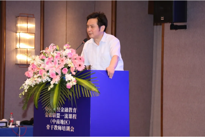 湖南大学杨胜刚教授在致辞中表示,联盟将为建设一流课程提供广泛的交流平台;为金融学科学生提供优质的学习资源;为金融人才培养提供良好的信息交流;为岳麓大学科技城内高校提供学分互认平台。并祝愿培训会取得圆满成功。