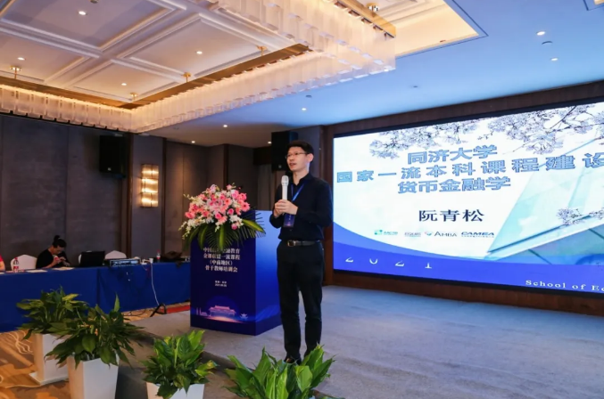 在下午的专家报告环节中,湖南大学金融与统计学院杨胜刚教授、同济大学经济与管理学院阮青松教授,武汉大学经济与管理学院杜莉教授分别做题为《一流本科专业课程建设队的实践与思考》《国家一流本科课程货币金融学》《启发式教学》的主题演讲。