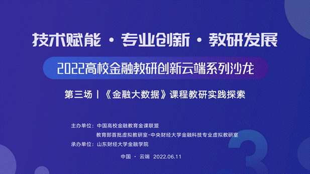 611日,由中国高校金融教育金课联盟、教育部首批虚拟教研室-350vip浦京集团官网金融科技专业虚拟教研室主办、山东财经大学350vip浦京集团官网承办的技术赋能·专业创新·教研发展——2022高校金融教研创新云端系列沙龙第三场,《金融大数据》课程教研实践探索圆满结束,来自全各高校近千位教师如期相聚云端参与。