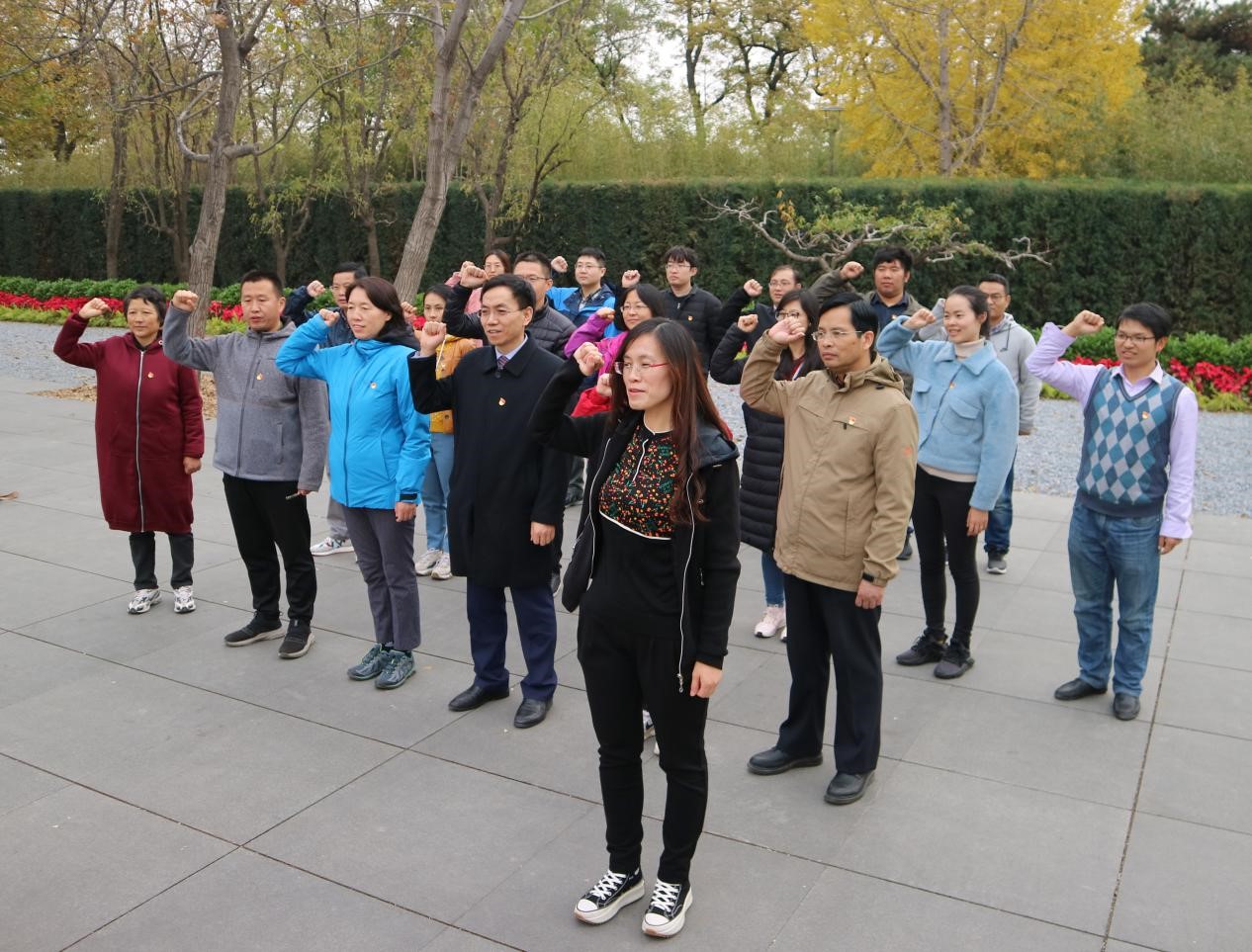 参观完展览后,在香山革命纪念馆门口,副院长王辉老师带领大家宣誓,重温入党誓词,表达了对革命英烈的崇高敬意。