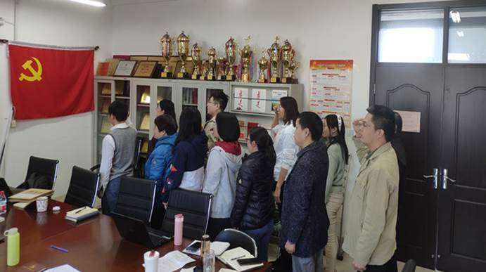 会议最后,全体党员进行宣誓,重温入党誓词。