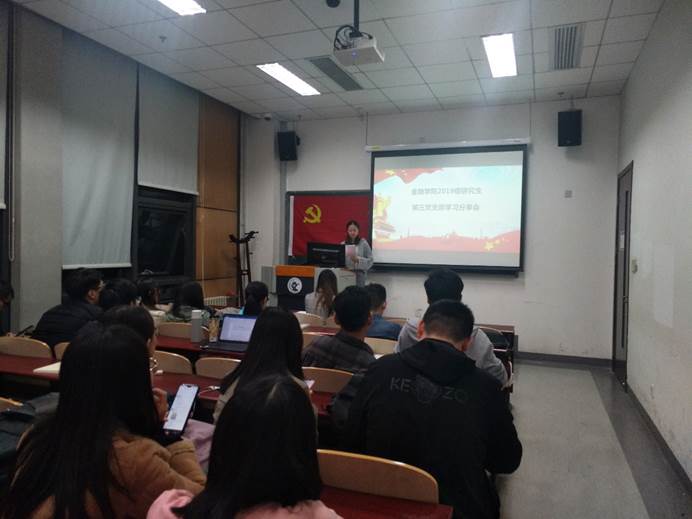 会议第二项进行关于《习近平关于“不忘初心、牢记使命”论述摘编》的读书分享会。郭鑫同志首先结合自己的所见所闻,阐述了对于“没有共产党就没有新中国”的理解,引起与会成员的强烈共鸣。随后干露同学结合自己去四川支教的经历,分享了贫困地区儿童的生活现状。在党的大力扶持下,贫困地区儿童的生活和教育质量不断改善,对未来充满了希望。但同时她也指出,对于贫困地区的发展我们可以做的仍然有很多。