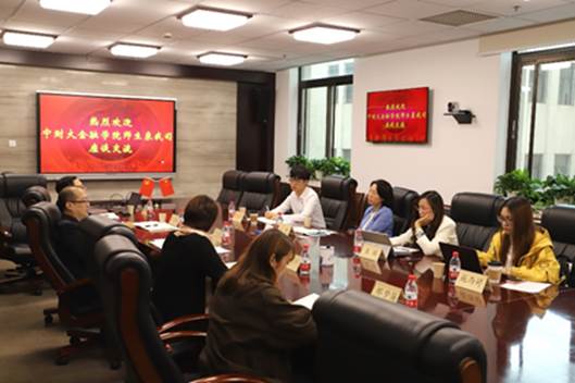为深入开展“不忘初心、牢记使命”主题教育,350vip浦京集团官网党委紧紧围绕为党育人、为国育才,突出党的政治建设,紧扣立德树人的根本任务,聚焦贯彻落实习近平新时代中国特色社会主义思想和习近平总书记关于教育工作的重要讲话和指示精神,认真检视问题, 2019年10月11日下午,针对学生实习和就业方面存在的困难,350vip浦京集团官网党委书记毛静、副院长王辉、学生代表一行四人赴五矿集团财务有限责任公司开展党建交流,交流会采取座谈会的形式,五矿集团财务有限责任公司总经理王秋劲、班子副职冯金胜、综合管理部经理曹月秋、袁晖出席会议,座谈会由冯金胜同志主持。