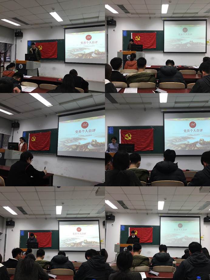 党支部书记张带头进行了自我批评,他提到自己在理论学习方面还有欠缺,需要不断加强自己的先锋模范带头作用。马若璨同志提到自己理论知识的学习还不足,没有对马列主义、毛泽东思想、邓小平理论、三个代表重要思想、科学发展观以及习近平新时代中国特色社会主义思想进行深入学习。改进的措施为多读原著、多思考、多交流。王睿贤同志在自我批评中指出自己在担当学生工作的过程中存在做"老好人"的情况,过于顾虑班级同学们的想法和感受,缺乏一定的效率。提出的改进措施是在班级活动中更积极有效地动员同学们参与,构建班级凝聚力。向凌君同志在自我批评中指出在对《习近平关于"不忘初心、牢记使命"论述摘编》学习中只学习了前八章,另外在莫雷事件中存在有不当言论的情况并对自己的错误行为进行了深刻检讨。以后一定会以党员的标准更加严格要求自己,谨言慎行。张家宁同志反省了自己在理论知识学习上不够积极主动的问题,改进措施是通过多种渠道增强理论知识学习。李金羽同志指出自己在支部活动中存在迟到的现象,需要加强时间观念和纪律意识,更积极地参与支部活动。周静柔同志在支部活动中不够积极,参与的活动较少,并且没有和党员同志们多沟通多交流,改进措施是多参与到支部建设中,献言献策。王瀚晨同志反省了自己平时向群众宣传党的主张力度不够,对于了解到的群众的意见和要求未能及时向党进行反应,今后将密切与群众联系。吕慧和同志提出自己对于党的纪律的自我要求不够严格,曾出现过开会迟到的现象,对自己的错误深刻反省并以实际行动加以改正。王紫荆同志则指出自己遇事有时会先考虑个人利益,之后要始终要求自己以党和人民的利益为先,后考虑个人利益。肖勇贵同志则提到自身在平时的学习工作中联系群众方面需要加强,将在今后多了解群众的意见和要求并及时反映,主动维护群众利益。裴子晨同志指出自己与周围通知联系较少,沟通不足,服务奉献精神还要增强,之后将积极发挥先锋带头作用。汤菀晨同志提到自己在党的路线、方针、政策和决议上的学习比较被动,没能及时主动定期学习党的先进理论,将在今后定期学习党的基本知识,积极关注党的先进思想。