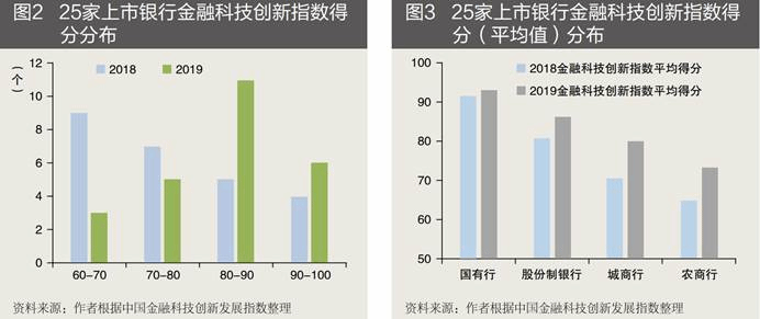 研究的银行业样本中,25家上市银行的整体金融科技发展水平,相比2018 年均取得了显著进步。业内金融科技水平的整体提升,金融科技后发能力强劲,且银行间金融科技发展水平的差距在不断缩小。