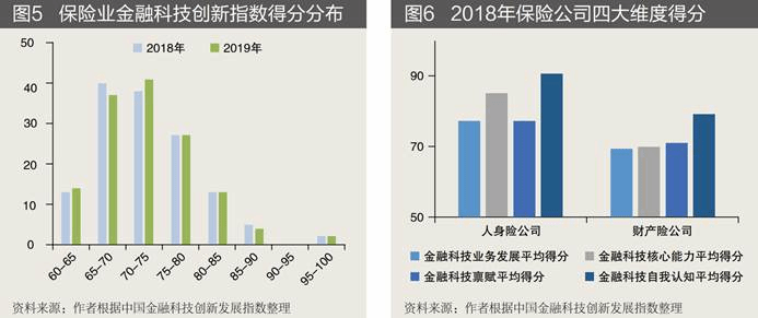 2019 年保险业的金融科技创新指数得分相比较2018年基本持平,行业内金融科技创新指数得分的差距也较大,业内的金融科技发展水平处于两极分化状态。大量中小规模的保险公司由于资金实力的问题无法支持其独立搭建完善的数字化平台、加强金融科技技术在业务领域的应用、提高金融科技发展水平。