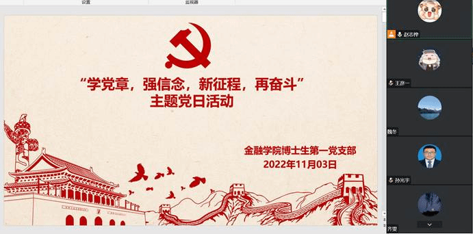 2022年10月22日,中国共产党第二十次全国代表大会通过了《中国共产党章程(修正案)》。党中央对党章的修改充分体现了马克思主义中国化时代化最新成果;充分体现了党的十九大以来党中央提出的治国理政新理念、新思想和新战略;充分体现了党的工作和党的建设新鲜经验。对此,为加强对党员的政治思想教育,紧跟时代步伐,350vip浦京集团官网博士生第一党支部于2022年11月3日晚8点,线上召开集中学习研讨活动,会议由支部书记赵志桦同志主持。