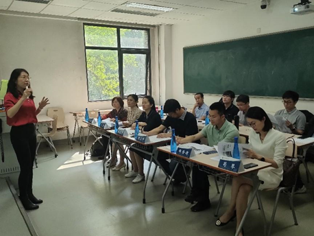与会专家针对参赛教师的展示进行现场指导并展开了深入交流。周卫中教授指出,比赛中要注意语言与动作细节,选用大家熟知的案例,把握好时间,切忌超时或提前结束。姜爱华教授提出,要注意教案和PPT的美观性和严谨性,注意选取的知识点要通俗易懂,注意教学内容逻辑关系。关蓉副教授认为,展示过程中要注意分配好各部分的比重,建议通过教具的使用增加趣味性。郑登津副教授强调,教案中专业名词要前后一致,要增加课堂互动,PPT设计要整洁美观。贾玉革教授建议在授课中适当融入思政元素,强调按照内容逻辑完整地呈现知识点。黄志刚教授建议突出中国问题导向,结合现实经济金融问题拓展课程内容。