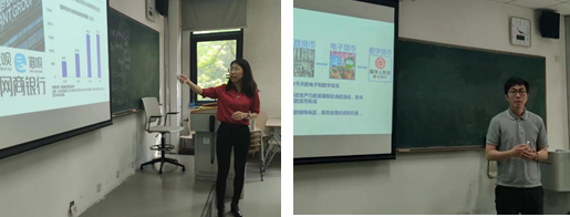 朱菲菲、郭俊杰两位青年教师首先进行教学展示。他们通过知识回顾、案例导入、板书、师生互动等教学手段,运用丰富的教学方法,呈现教学内容,展示了个人教学风采和扎实的教学基本功。